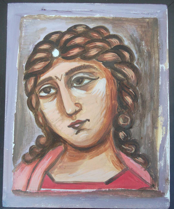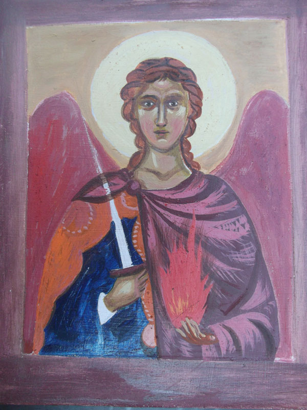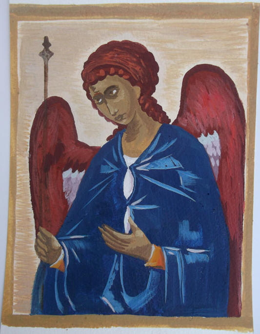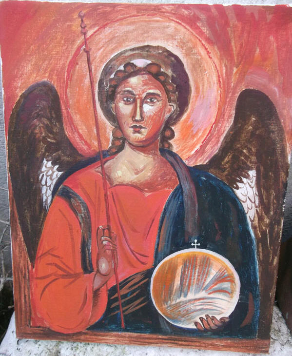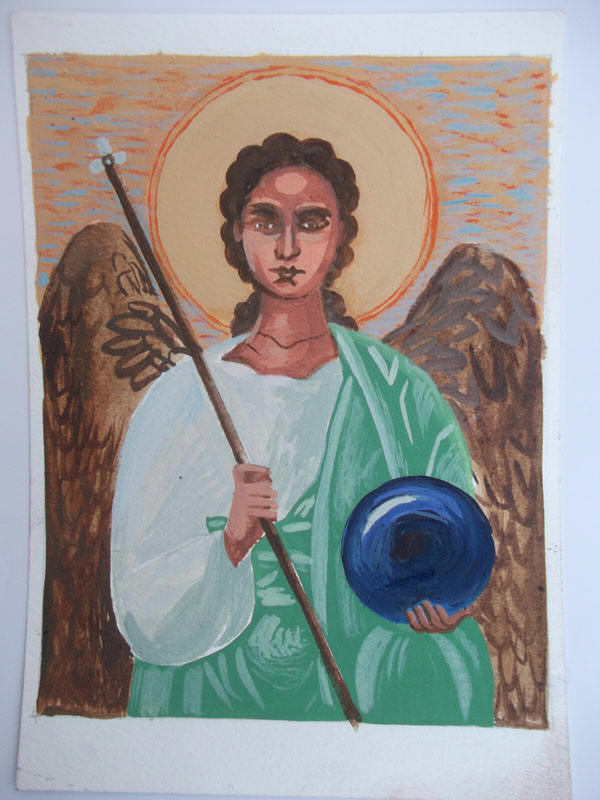these are traditional Byzantine angels -I don't know why they mostly carry a glass ball and a long stick like a curtain rail but they do